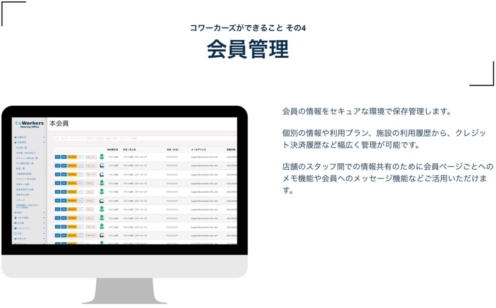 株式会社コワーカーズ様と提携し、コワーキングスペース運営を支援する「CoWorkers」を共同で開発・提供を行っております。